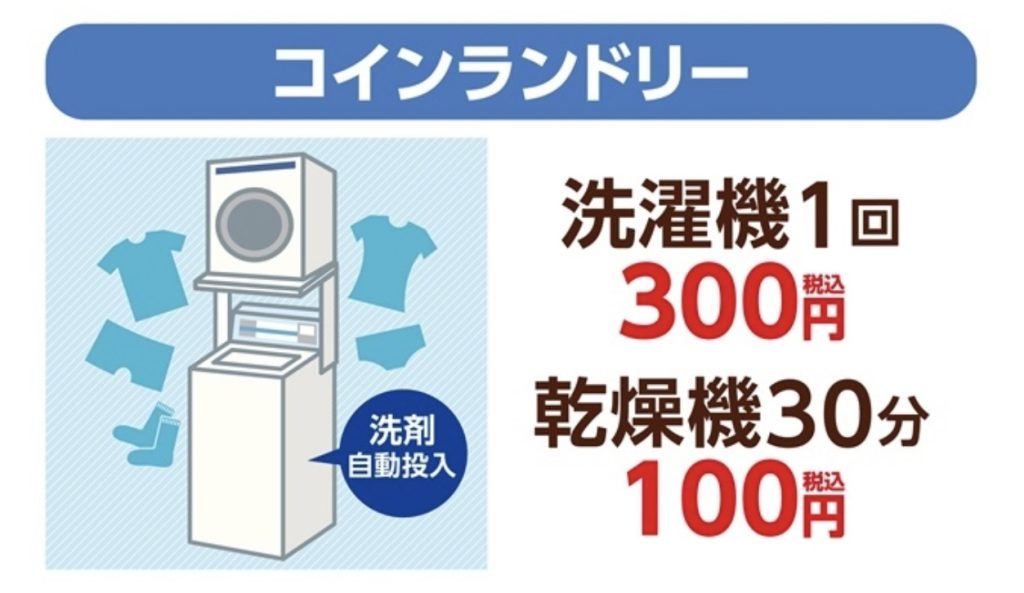 コインランドリーは洗濯と乾燥が一体になっているところが多く、相場は900円〜1200円程度。長期の車中泊旅では出費が大きいですよね。