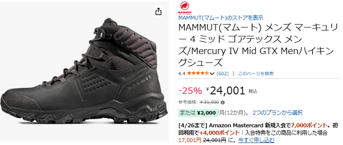 MAMMUTのマーキュリー4は定価¥33,000です。
